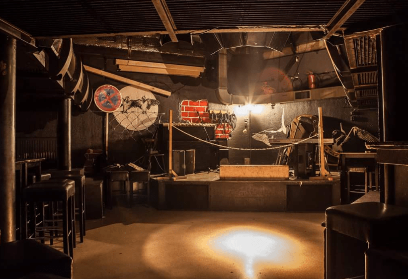 La entrada deja intuir cómo puede llegar a ser lo que se encuentra en su interior. Paredes llenas de graffitis y pasadizos llenos de neones se abren paso dejando a la vista varias salas muy peculiares.
